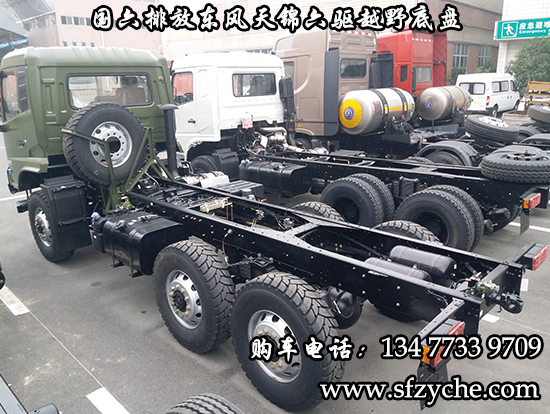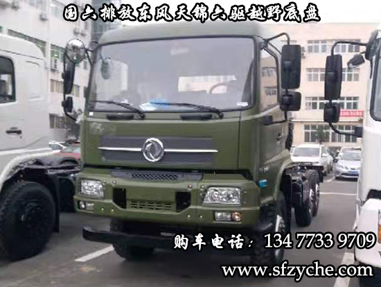 國(guó)六排放東風(fēng)天錦六驅(qū)越野底盤(pán),東風(fēng)天錦D530一排半駕駛室,6×6驅(qū)動(dòng),康明斯B6.2NS6B210國(guó)六發(fā)動(dòng)機(jī)210馬力,最大扭矩:850N.m/1100-1700rpm,排量6.2L、韶齒手動(dòng)六檔變速箱,東風(fēng)德納車(chē)橋,前驅(qū)動(dòng)橋4.5噸,中后橋都為軍工德納4.5噸驅(qū)動(dòng)橋,大花紋越野輪胎,軸距3500+1250mm,電動(dòng)玻璃,方向助力,斷氣剎,ABS,大燈自動(dòng)調(diào)節(jié),自動(dòng)調(diào)整臂,選裝原廠(chǎng)空調(diào)。