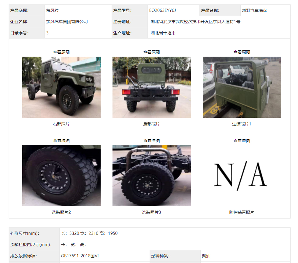 > 新聞中心 > 公司新聞 > 東風(fēng)猛士民用版EQ2063EYY6J型四驅(qū)越野汽車(chē)底盤(pán)在340批次公告中公示成功