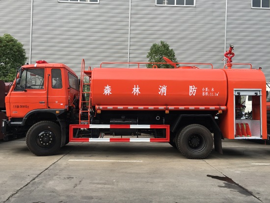 東風(fēng)四驅(qū)越野森林消防水罐車_東風(fēng)11.1噸四驅(qū)消防水車_國(guó)五四驅(qū)越野森林滅火水車_東風(fēng)4×4越野SCS5183GPSEQ型四驅(qū)綠化噴灑車簡(jiǎn)介:采用東風(fēng)EQ2180GD5DJ型越野汽車底盤(pán),東風(fēng)153寬體駕駛室,4×4驅(qū)動(dòng),康明斯ISB190 50國(guó)五發(fā)動(dòng)機(jī),六檔變速箱,東風(fēng)商用車橋,前驅(qū)動(dòng)橋3.8噸,后橋10噸,10.00R20輪胎,軸距4500mm,電動(dòng)玻璃,方向助力,斷氣剎,ABS。罐體采用優(yōu)質(zhì)碳鋼Q235板材,板材厚度4mm,罐體容積11.1立方,安裝夾心取力器,后置泵箱,消防栓接口左右各一個(gè),消防炮采用PS40消防水炮,流量40L/S/1.0MPa 水射程:≥50m,消防泵采用常壓消防泵型號(hào):CB10/40車用消防泵,流量:40L/s,壓力:1.0MPa,駕駛室頂部安裝長(zhǎng)條警燈帶喊話器,全車顏色橘紅,兩側(cè)噴涂白色森林消防字樣。
