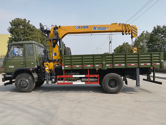 3. 采用徐工8噸直臂吊機(jī),徐工原廠SQS200型直臂吊機(jī),四節(jié)臂,舉升高度13.5米,工作半徑11.5米,最大起升質(zhì)量8噸,360度全液壓,全回轉(zhuǎn),選裝徐工原廠高空操作座椅上操作,徐工雙腔液壓后支腿,車廂4.8米標(biāo)準(zhǔn)大箱。