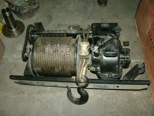 ——這種絞盤和船用的一樣,但它是直放而非一般的橫放形式。更特別的是,它上面沒有繞上鋼纜或麻繩,而僅有一個圓柱形的絞動鼓。使用這個PTO時比現(xiàn)代的絞盤還要簡單,只要開著引擎并把絞盤旁邊的波棍推進,圓柱體馬上會自轉(zhuǎn)。此時再將麻繩套在絞動鼓上一二圈,繩的另一端則以人手把持著,操作人用力拉,麻繩便會隨著絞動體一起轉(zhuǎn)。只要操作人不用力拉,繩子一放松,絞動鼓則自行旋轉(zhuǎn)但不會帶動麻繩。它的缺點是不能倒轉(zhuǎn)。